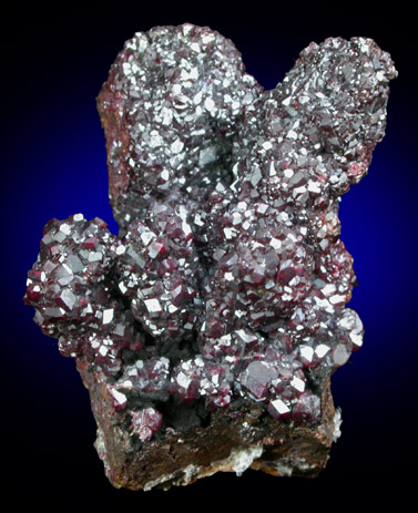 | Description: | Sparkling cluster of metallic-looking dark-red cubo-octahedral cuprite crystals coating the surfaces of a convoluted cavity. With strong illumination the cuprite crystals show they are actually translucent. Ex. Robert P. Bates (1926-2008) collection #057 |
