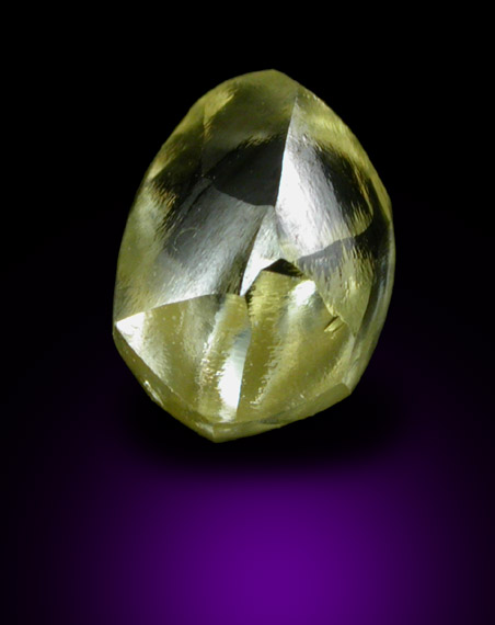 | Description: | Sparkling yellow natural diamond crystal with smooth dodecahedral crystal faces. Internally there is a microscopic metallic inclusion that is not visible in most orientations. This crystal has excellent sparkle and good yellow color. |