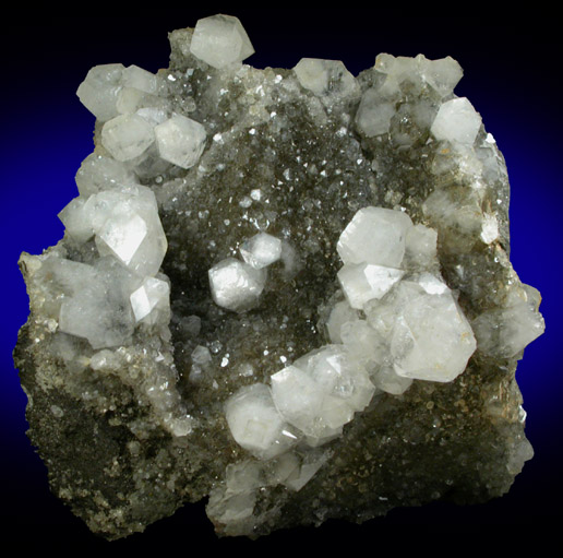 | Description: | Many lustrous transparent-to-translucent colorless apophyllite crystals covering one face of matrix. Ex. Hal Kramer collection |