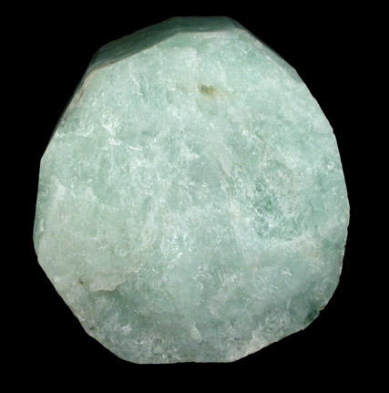 | Description: | Large crystal of blue-green beryl with smooth crystal faces exhibiting 18-sided prism faces that made this locality famous. The bottom end is terminated, but completely covered with translucent quartz. The beryl crystal is complete all around. |