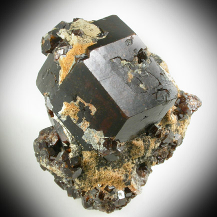 | Description: | Aesthetic cluster of large and small dodecahedral brown andradite-grossular garnet crystals with clean, flat crystal faces and remnants of tan-colored matrix on some surfaces. The garnet here ranges from andradite to grossular. |
