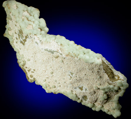 | Description: | Translucent pale-green prehnite crystals in botryoidal aggregates to 3 mm diameter with sharp white albite crystals to 0.5 mm. The specimen is fully crystallized on all surfaces except one corner where it was attached. The rear has a brown clay coating. Ex. R. Kreider collection, ca. 1980 |