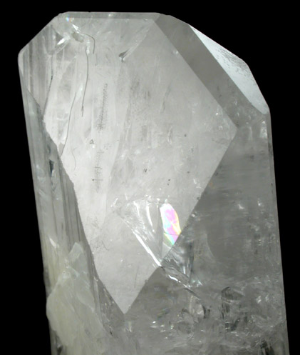 | Description: | Lustrous pale-pink (almost colorless) prismatic danburite crystal with no matrix. Internally the danburite crystal is translucent with transparent areas in the termination. The lower rear edge has a concave impression where it intersected another crystal |