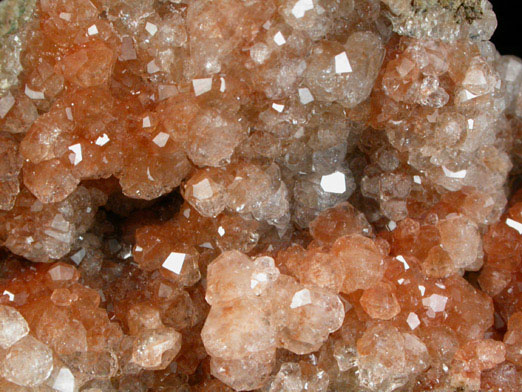 | Description: | Sparkling cluster of lustrous transparent analcime crystals in colors varying from brown to colorless. The brown color appears to be caused by microscopic hematite inclusions in the analcime crystals. Collected in 2002 |