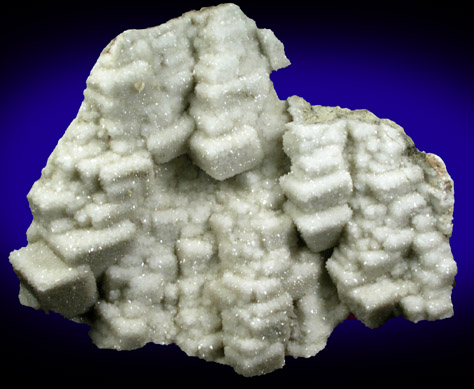 | Description: | Sparkling quartz pseudomorphs after parallel rhombohedral calcite crystals to 16 mm on edge. The rear shows saw marks where it was trimmed. |