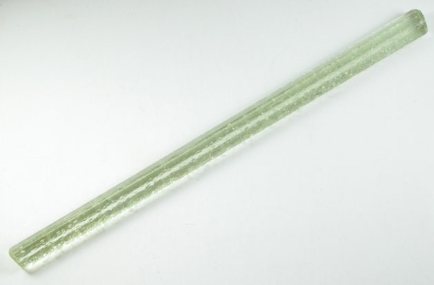 | Description: | Elongated transparent (flawless) aquamarine crystal, the blue-green gem variety of the mineral species beryl, with etched prism faces. The aquamarine crystal has green color and the ends appear to be unterminated. |