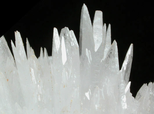 | Description: | Lustrous translucent white bladed celestine crystals with pointed terminations in a fan-shaped formation of radiating crystals. The celestine crystals fluoresce under UV illumination. |