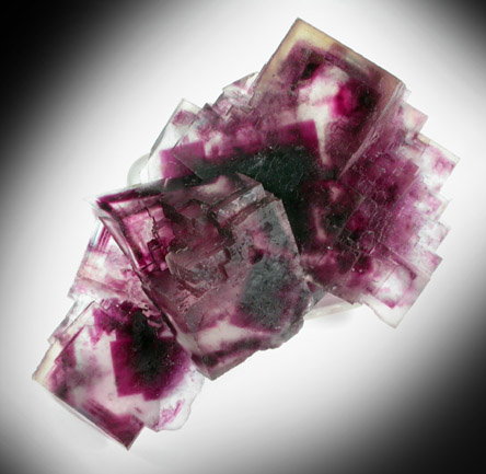 | Description: | New find of transparent cubic fluorite crystals that are colorless with purple phantom zones internally. The fluorite crystals have satin luster on the crystal faces. Note the purple phantom zones are rotated 45° to the outer cubic crystal form. |