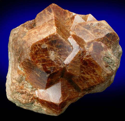 | Description: | Large crystals of lustrous brown grossular garnet on massive grossular-diopside matrix. The crystals are clean with few imperfections or quartz in-filling that is commonly found on garnet specimens from this locality. Ex. Vassar College Museum of Geology & Natural History (Poughkeepsie, NY) #828 |