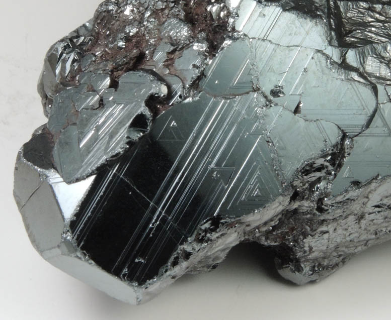| Description: | Lustrous gray-metallic hematite crystals in a complex group of parallel crystals fully crystallized front and rear. Though the edges of the formation appear damaged, they are actually naturally crystallized with small crystal faces. |