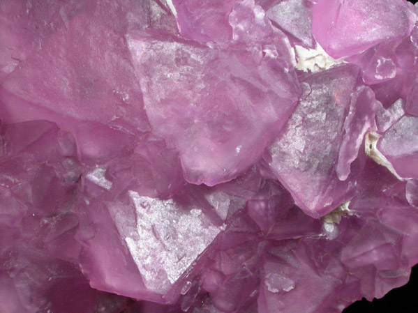| Description: | Transparent purple octahedral fluorite crystals on white quartz. The surfaces of the fluorite crystals have a waxy luster, but the internal transparency is still apparent. |