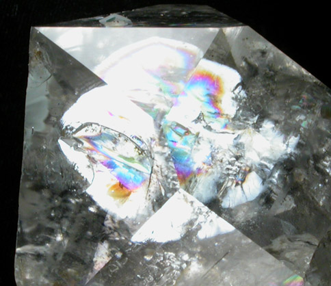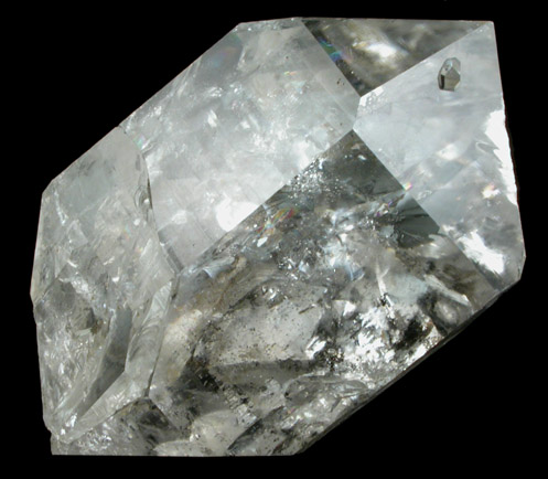 | Description: | Lustrous interconnected Herkimer Diamond crystal, the transparent doubly-terminated variety of quartz from the region around Herkimer, N.Y., with a few black hydrocarbon inclusions (called anthraxolite by local collectors) deep inside. |