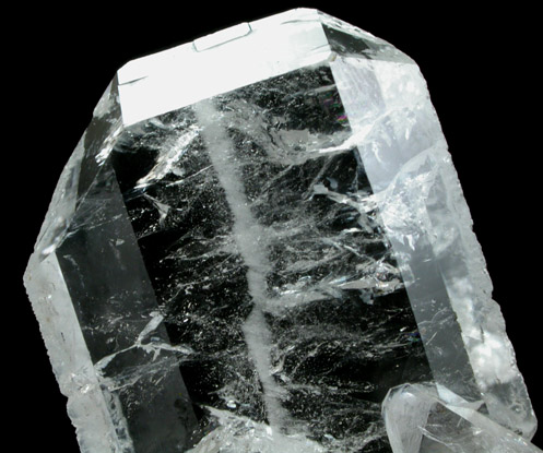 | Description: | Faden-habit quartz: transparent doubly-terminated colorless quartz crystals that grew out from a milky center seed zone, known as the sucre (sugar). |