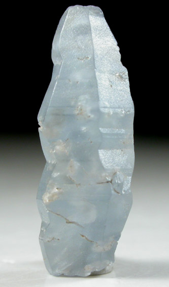 | Description: | Doubly-terminated transparent blue sapphire crystal with complex striated prism faces the result of complex twinning. The crystal is unusually lustrous and shows no signs of alluvial wear. |