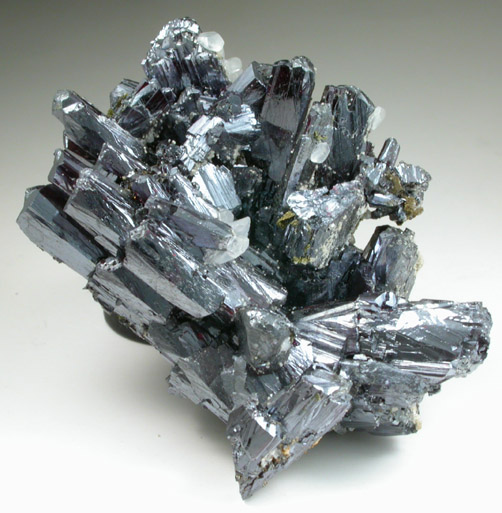 | Description: | Showy cluster of lustrous metallic-looking pyrargyrite crystals to 15 mm long with partial overgrowth on the rear of flattened colorless translucent calcite crystals to 5 mm. The pyrargyrite crystals are translucent red color when rear-illuminated. Ex. Peter B. Nalle (1923-2010) collection #772; originally acquired in 1999 |