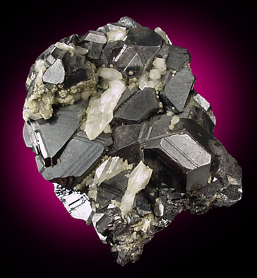 | Description: | Well crystallized lustrous black sphalerite crystals to 15 mm with scattered white quartz crystals to 6 mm long. ex. J. Cilen #16870 |