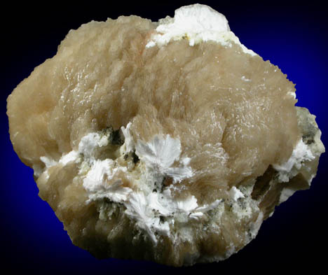 | Description: | Large hemispherical formation of translucent brown stilbite crystals to 30 mm long with bladed white laumontite crystals to 5 mm included in the stilbite around the edges where it was attached to surrounding basalt. Ex. John Geiges collection #11052 |