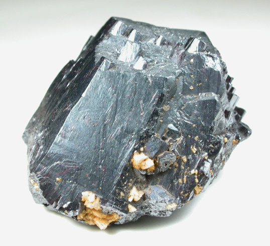 | Description: | Large single crystal 30 mm long of lustrous metallic-looking pyrargyrite with epitactic overgrowth of smaller pyrargyrite crystals to 3 mm. The pyrargyrite crystals are translucent red color when rear-illuminated. Ex. Peter B. Nalle (1923-2010) collection #772b; originally acquired in 1999 |