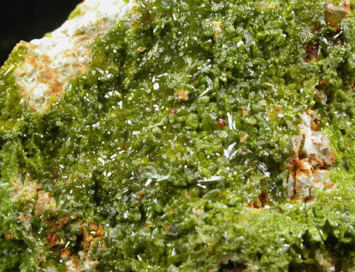 | Description: | Rich specimen of lustrous translucent green pyromorphite crystals to 1.0 mm on white quartz-rich gossan with many di-pyramidal translucent orange wulfenite crystals to 0.3 mm. Locality info see: Phoenixville Lead-Silver Mines in Min. Rec. v.20-#5. |