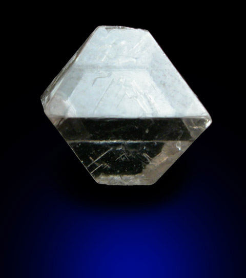 | Description: | Glassy gray octahedral natural diamond crystal with flat faces that have subtle crystallization patterns on a few sides. Internally no flaws or inclusions are visible. The outer edges show fain alluvial wear when viewed under 20x magnification. |