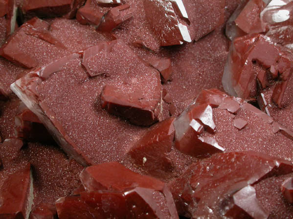 | Description: | Large plate of lustrous rhombohedral calcite crystals colored chocolate-brown by hematite inclusions. The calcite crystals have select faces overgrown with second generation of calcite microcrystals. Ex. Peter B. Nalle (1923-2010) collection #653; originally acquired in 1993 |