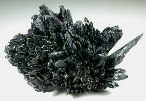 | Description: | Cluster of radiating bluish black bladed vivianite crystals. This specimen is from the old find ca. 1960 of vivianite crystals that formed in a fossil deposit where buried organic matter provided the phosphate for the vivianite to form. Ex. Peter B. Nalle (1923-2010) collection #614; originally acquired in 1991 from Perhams; Collected ca. 1960 |