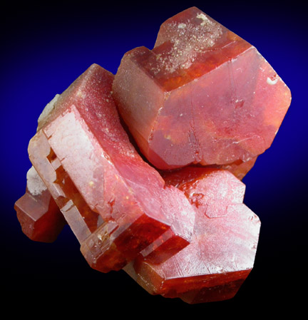 | Description: | Large translucent red hexagonal vanadinite crystals with remnants of tan-colored matrix on the bottom. The vanadinite crystals have lustrous prism faces with satin-like luster on the flat basal pinacoid termination faces. |