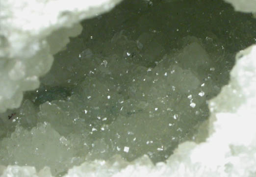 | Description: | Conical cavity composed of lustrous translucent pale-green datolite crystals to 4 mm with opening on one corner allowing the hollow center to be viewed. |