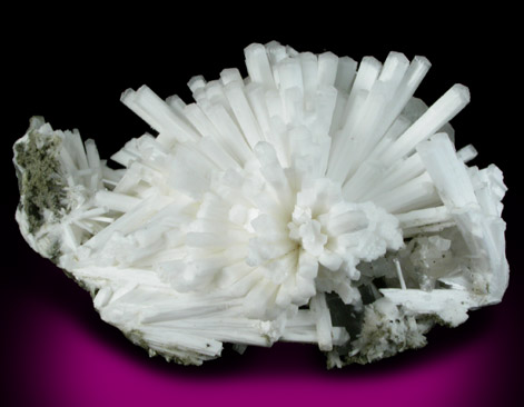 | Description: | Aesthetic cluster of slender white natrolite crystals to 15 mm long in a diverging spray-shaped formation on greenish basalt with translucent rhombohedral calcite crystals to 5 mm on the rear edge. |