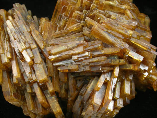 | Description: | Translucent golden-brown bladed barite crystals in rounded aggregates composed of many subparallel crystals. Ex. Larry Krause (1945-2010) collection |