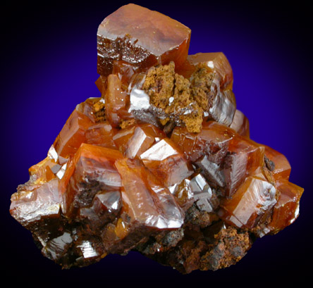 | Description: | Lustrous orange-brown blocky wulfenite crystals intermixed with brown limonite gossan. The wulfenite crystals are thick, square crystal form and the color grades from brown on select faces to translucent orange. Ex. Larry Krause (1945-2010) collection |