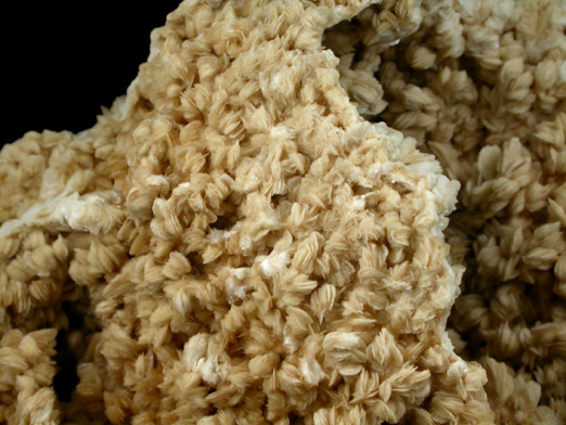 | Description: | Complex cluster of bladed tan-colored barite crystals that are interconnected in planar formations forming hollow boxwork structures lined on all surfaces with barite crystals. The barite fluoresces and phosphoresces under UV illumination. |