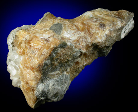 | Description: | Crystalline mass of bladed translucent brown stilbite crystals filling fractures in gray matrix. Ex. Peter B. Nalle (1923-2010) collection #570, collected in September 1939 |