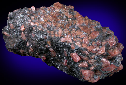 | Description: | Elongated translucent brown bustamite crystals to 17 mm in gray-metallic galena. One bustamite crystal is partially exposed and could be 45 mm long if it is confirmed as all one crystal, not two separate bustamite crystals. Ex. Peter B. Nalle (1923-2010) collection |