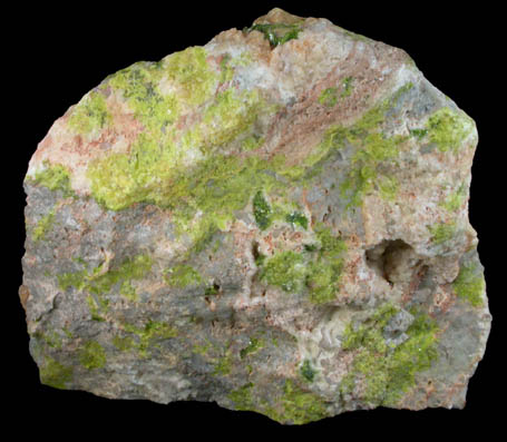 | Description: | Yellow-green rodalquilarite crusts on alunite-rich matrix with small deep-green rodalquilarite crystals visible inside small cavities. Ex. Peter B. Nalle (1923-2010) collection #573; gift from Hector Araya in 1988 |