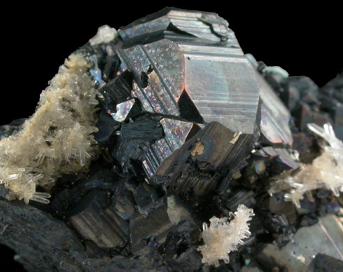| Description: | Pyrite crystals up to 8 mm with blue iridescent surfaces plus transparent colorless quartz crystals to 2 mm. For more information see article: Butte, Montana, Minerals, Mines, and History in Mineralogical Record Jan.-Feb. 2002. |