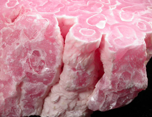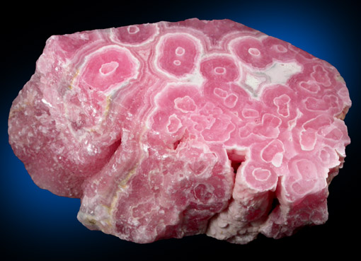 | Description: | Translucent stalactitic rhodochrosite with deep pink color. One face was polished to highlight the concentric growth patterns of the rhodochrosite. |