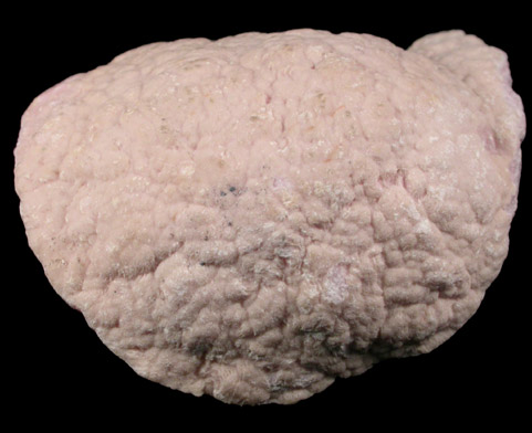 | Description: | The end of a translucent pink rhodochrosite stalactite with one face polished and the rear exhibiting the outer layer of rhodochrosite crystals. The polished face highlights the concentric growth patterns of the rhodochrosite. |
