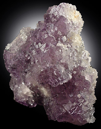 | Description: | Lustrous purple fluorite crystals completely coating all sides of the specimen. The crystals are complex cubic form with many parallel faces. The back side shows casts after calcite in the fluorite. |