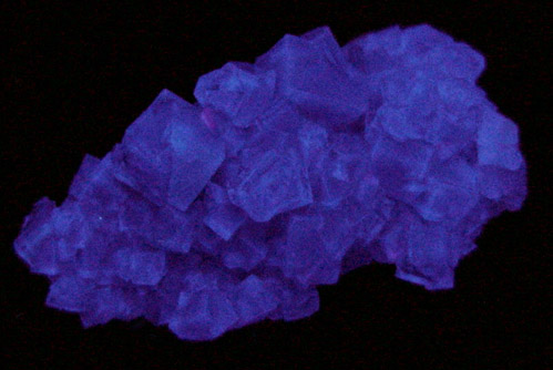 | Description: | Lustrous transparent purple fluorite crystals that fluoresce bright violet under UV illumination. The fluorite crystals are rectangular form and many are interpenetrant-twinned. Ex. Ray Woodman (1927-2021) collection |