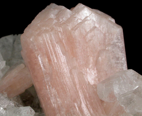 | Description: | Doubly-terminated lustrous translucent pinkish-orange stilbite crystals to 60 mm intermixed with doubly-terminated transparent colorless apophyllite crystals to 28 mm. Ex. Tim Swan collection at River Valley Mineral Museum (Rumford, Maine) #1007 |