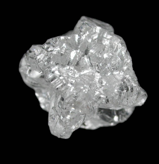 | Description: | Unusual skeletal crystal of colorless, gem-grade diamond. The skeletal shape is cubic overall and has complex depressed faces with raised edges composed of octahedral faces. Hard to photograph - must be seen in person. |