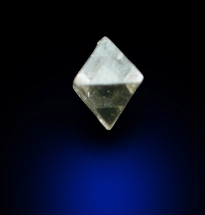 | Description: | Small transparent pale-brown octahedral diamond crystal with smooth, flat crystal faces. Internally the diamond crystal has no flaws, but there is a small dark inclusion visible under magnification. |