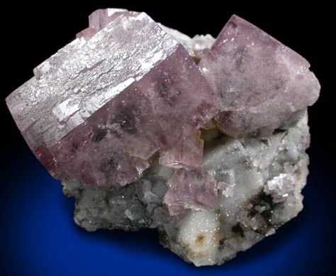 | Description: | Translucent purple cubic fluorite crystals to 28 mm with some crystals coated with a thin layer of colorless sugar-like quartz microcrystals. The fluorite fluoresces bright violet under UV illumination. Ex. John Lawson (1942-2024) and Robert Lawson |