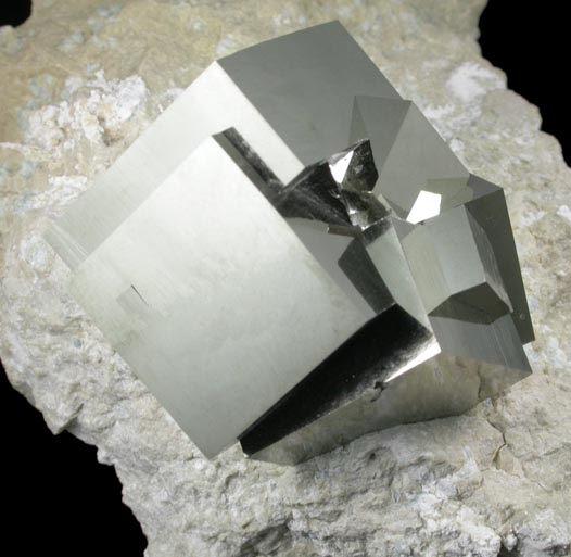 | Description: | Six intergrown cubic yellow-metallic pyrite crystals perched on yellow-gray clay. One crystal edge on the rear has a small irregular matrix inclusion along the edge that is where the pyrite crystallized simultaneously with the surrounding boundary layer. |