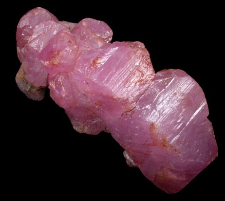 | Description: | Cluster of translucent deep pink sapphire crystals, the gem variety of the mineral species corundum, with striated crystals surfaces with slightly waxy luster. Weight: 99.85 carats |