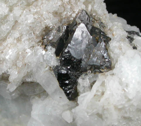 | Description: | Several wedge-shaped black cassiterite crystals to 4 mm on albite crystals to 1 mm. The cassiterite appears to be repeatedly twinned and the front edge is rough where it was attached to surrounding matrix. Collected by Richard Schooner (1925-2007); ex. Bruce Jarnot in April 2010 |