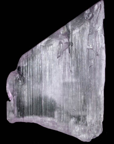 | Description: | Doubly-terminated transparent pink kunzite crystal, the pink gem variety of the mineral species spodumene, with striated prism faces and angled termination. The pink kunzite color is most noticeable when viewing down the C axis. |