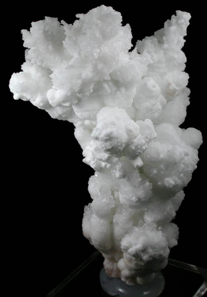 | Description: | Sculptural formation of lustrous white calcite crystals in spherical aggregates to 14 mm diameter fully crystallized all around. The calcite formation is mounted to an acrylic display stand so that it stands upright. |