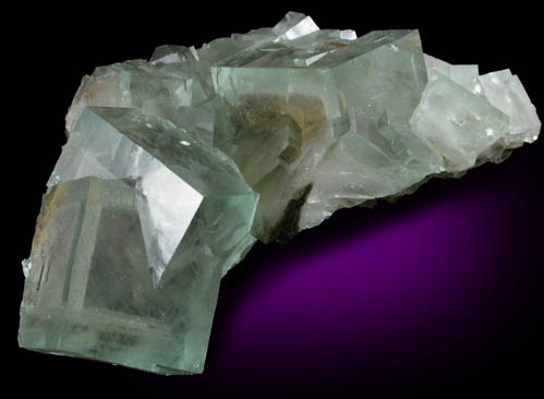 | Description: | Double-sided specimen of glassy cubic fluorite crystals that are internally transparent green, but have thin olive-colored internal phantom zones below select faces, usually two adjacent face of the cube. |